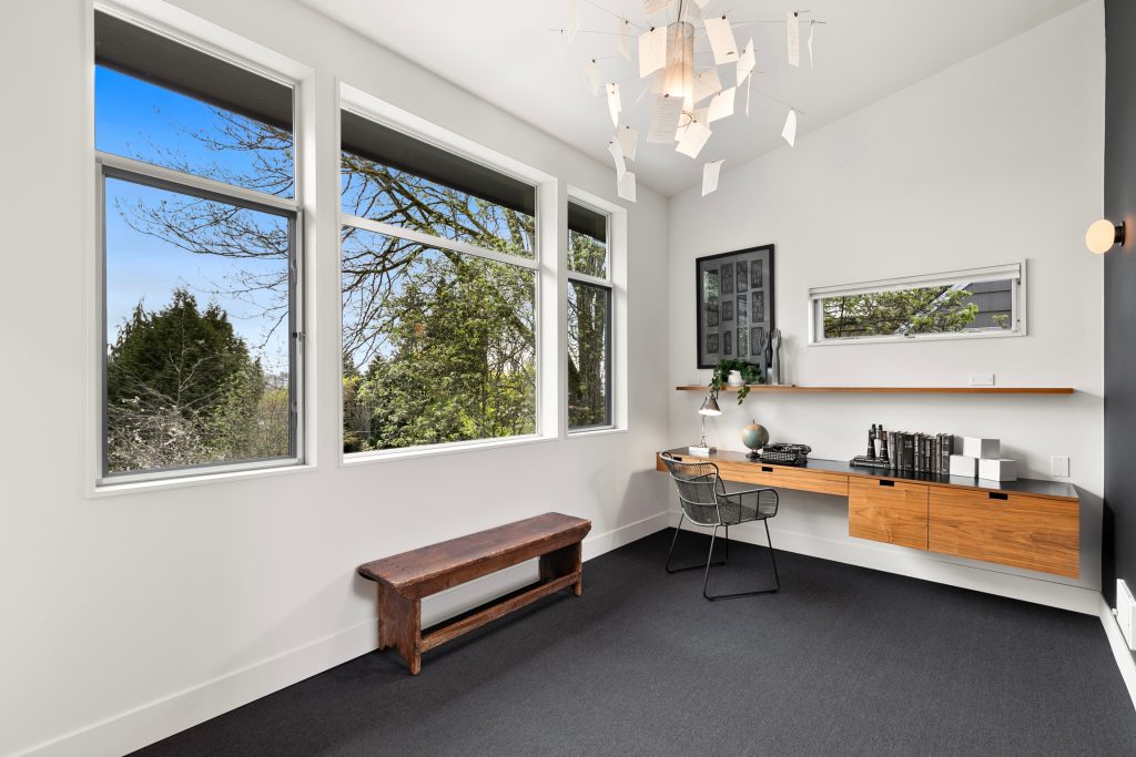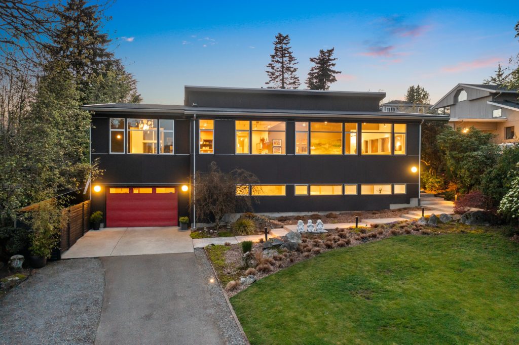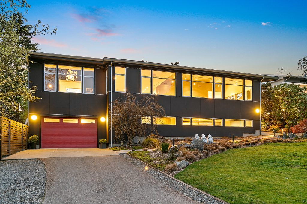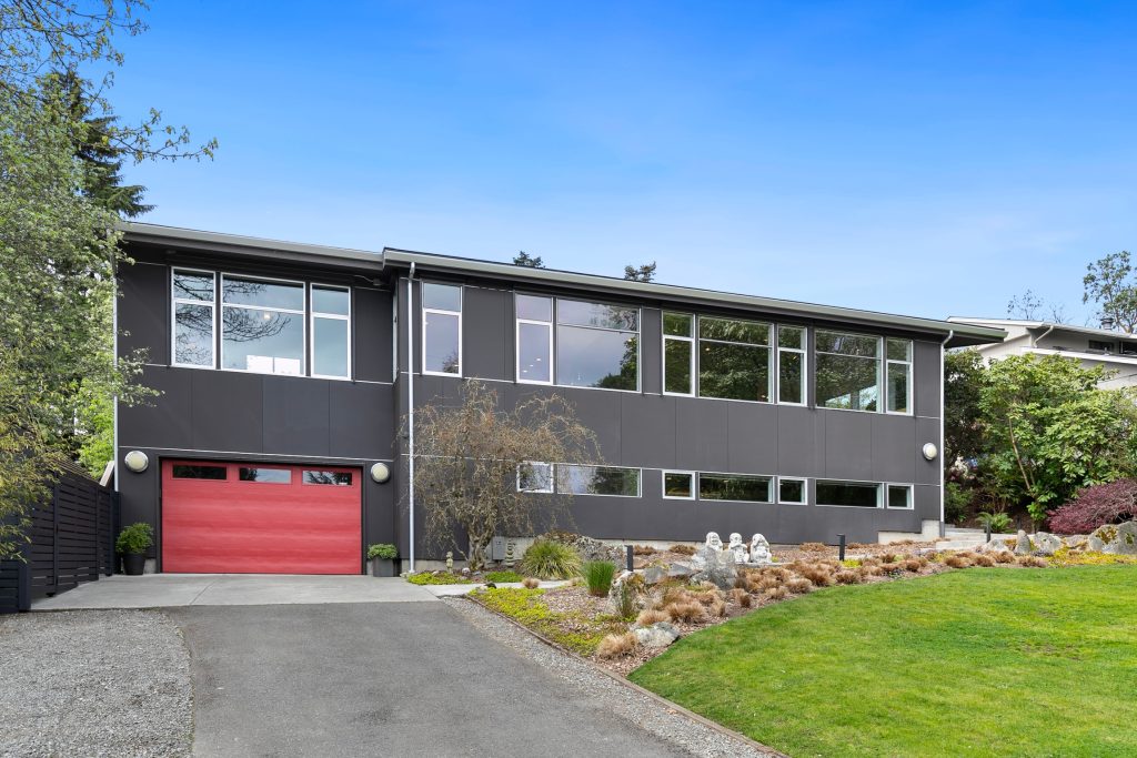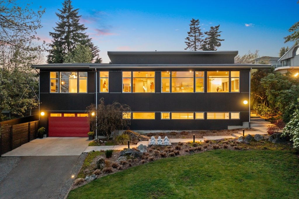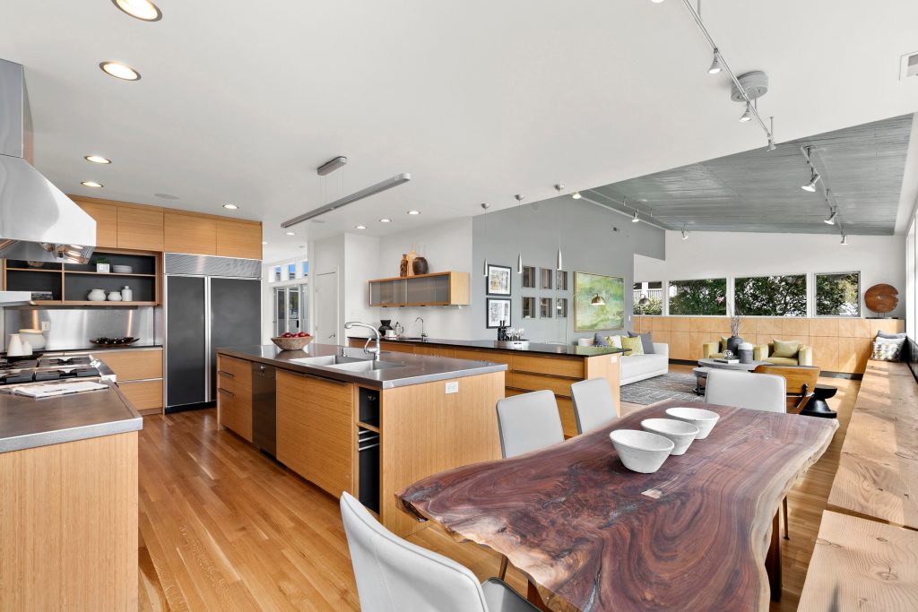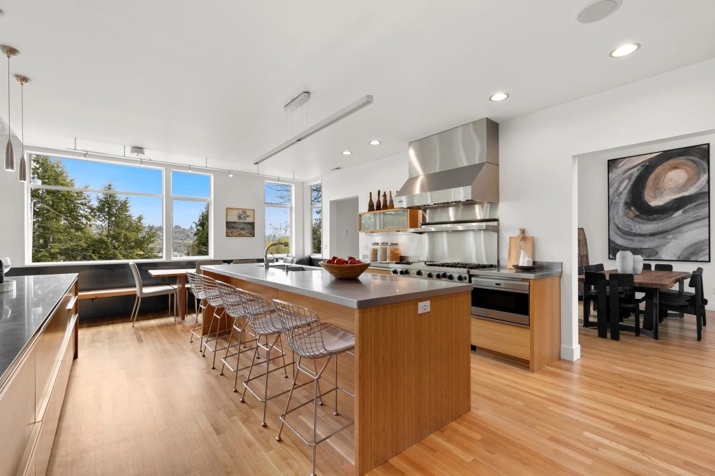 Located in the coveted Magnolia neighborhood, this beautifully modern, fully updated residence offers an exceptional blend of luxury, comfort, and natural privacy—positioned in a setting that feels quietly removed, almost like its own private street. Expansive living spaces with soaring ceilings are complemented by softly framed outlooks of the city skyline and Mount Rainier, subtly unveiled through a backdrop of mature trees, creating a rare sense of seclusion while preserving the beauty of the surroundings. Walls of windows fill the home with natural light, highlighting the refinished hardwood floors. The gourmet kitchen is a statement of elegance, featuring premium stainless steel appliances and a sleek stainless steel countertop, seamlessly connecting to a spacious dining room and a refined private office just beyond.