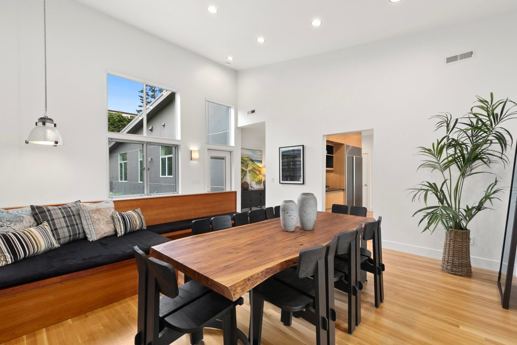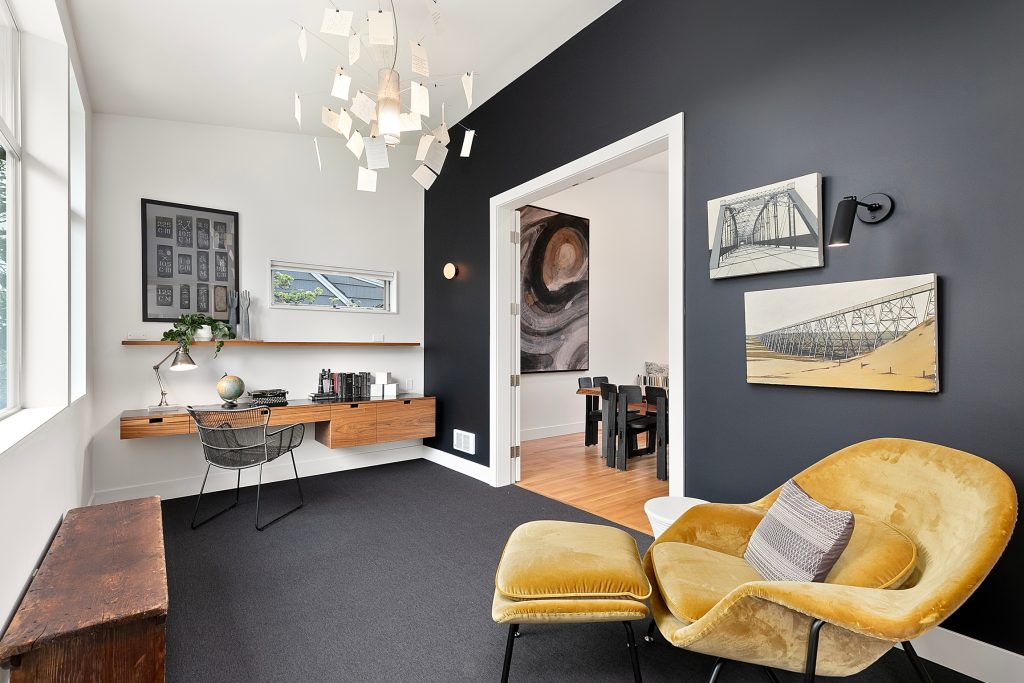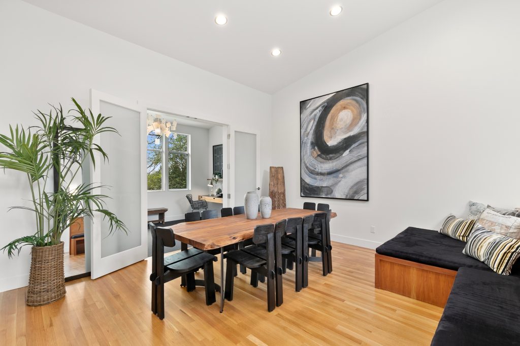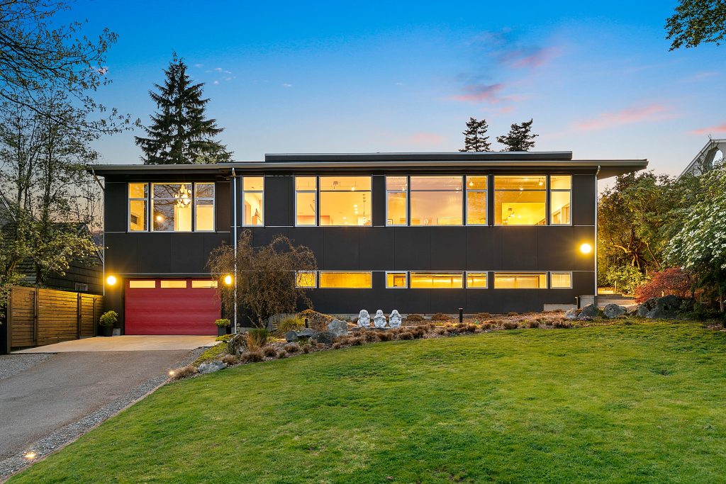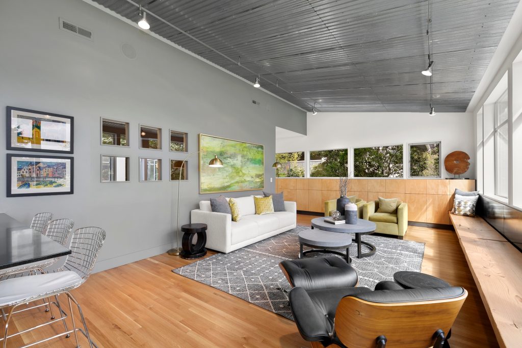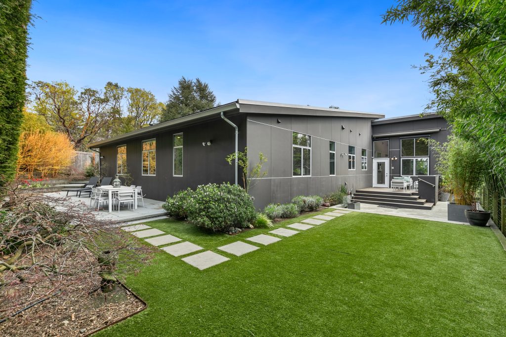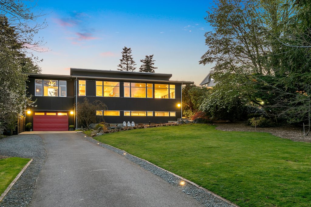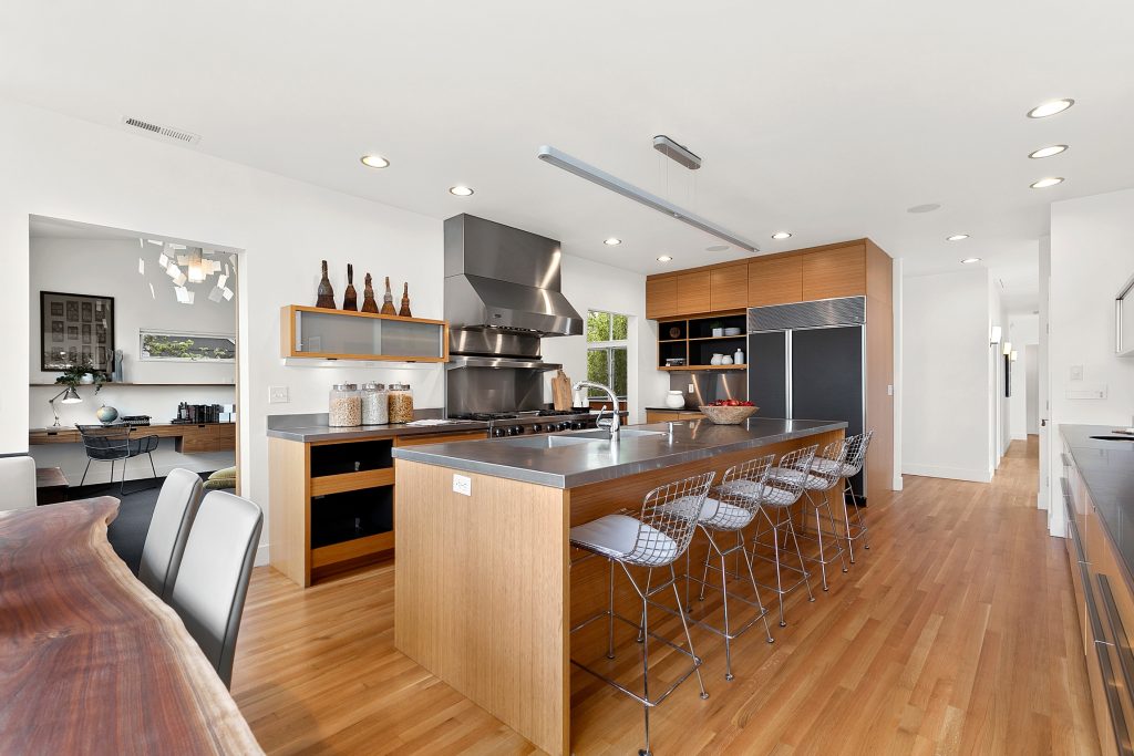Located in the coveted Magnolia neighborhood, this beautifully modern, fully updated residence offers an exceptional blend of luxury, comfort, and natural privacy—positioned in a setting that feels quietly removed, almost like its own private street. Expansive living spaces with soaring ceilings are complemented by softly framed outlooks of the city skyline and Mount Rainier, subtly unveiled through a backdrop of mature trees, creating a rare sense of seclusion while preserving the beauty of the surroundings. Walls of windows fill the home with natural light, highlighting the refinished hardwood floors. The gourmet kitchen is a statement of elegance, featuring premium stainless steel appliances and a sleek stainless steel countertop, seamlessly connecting to a spacious dining room and a refined private office just beyond.