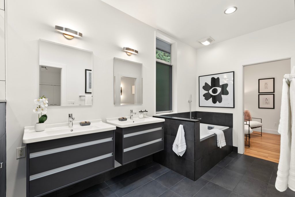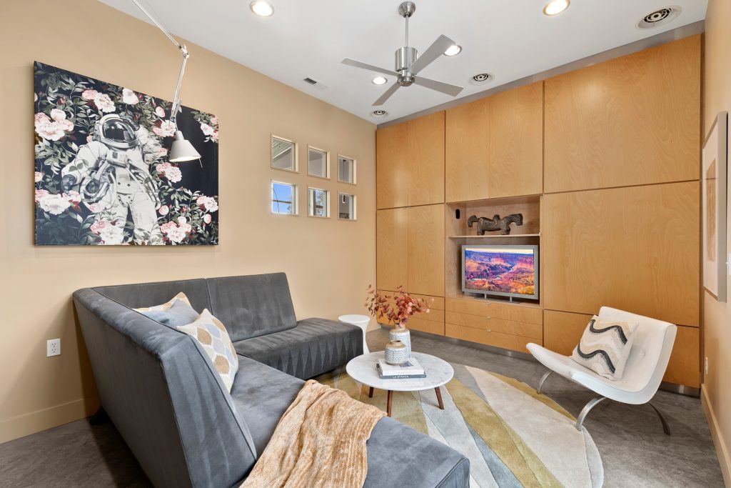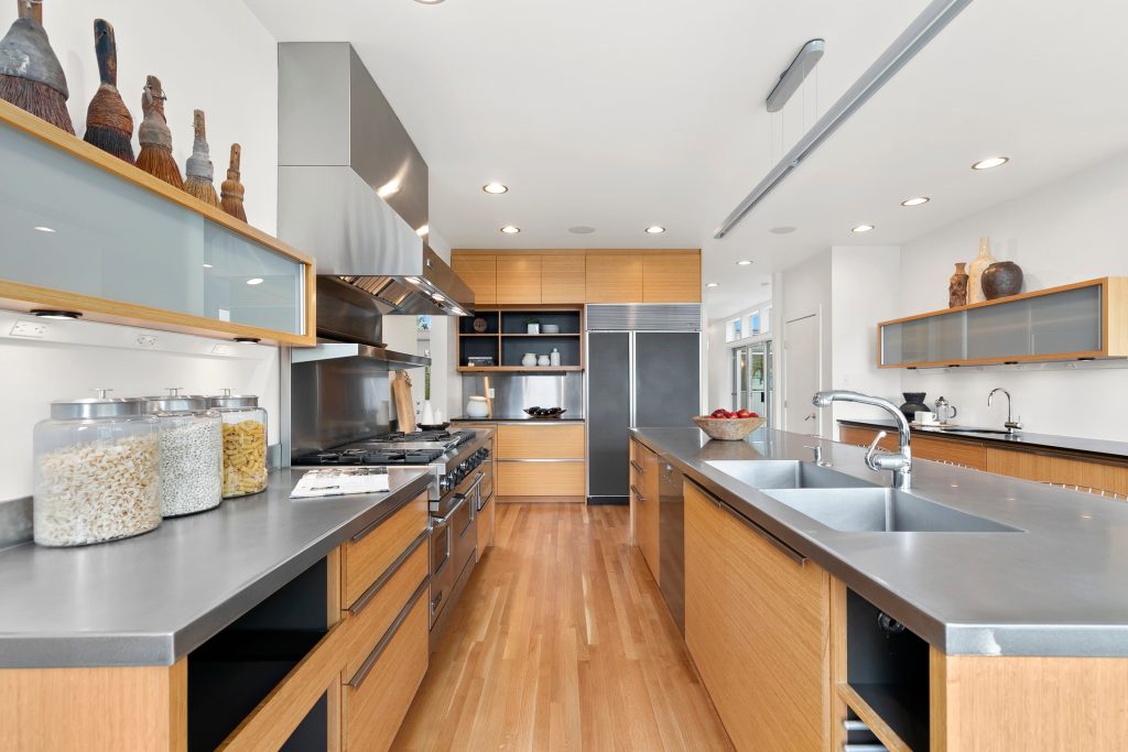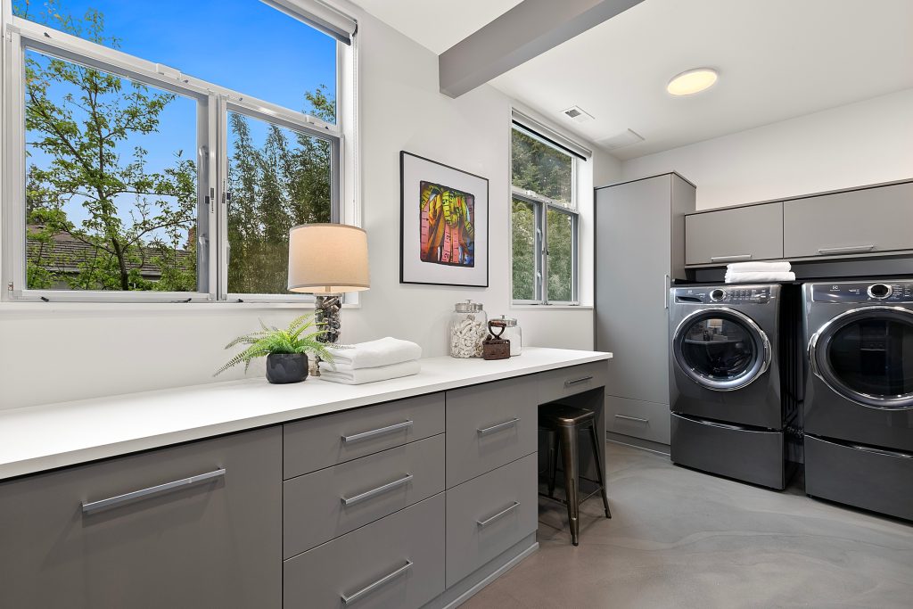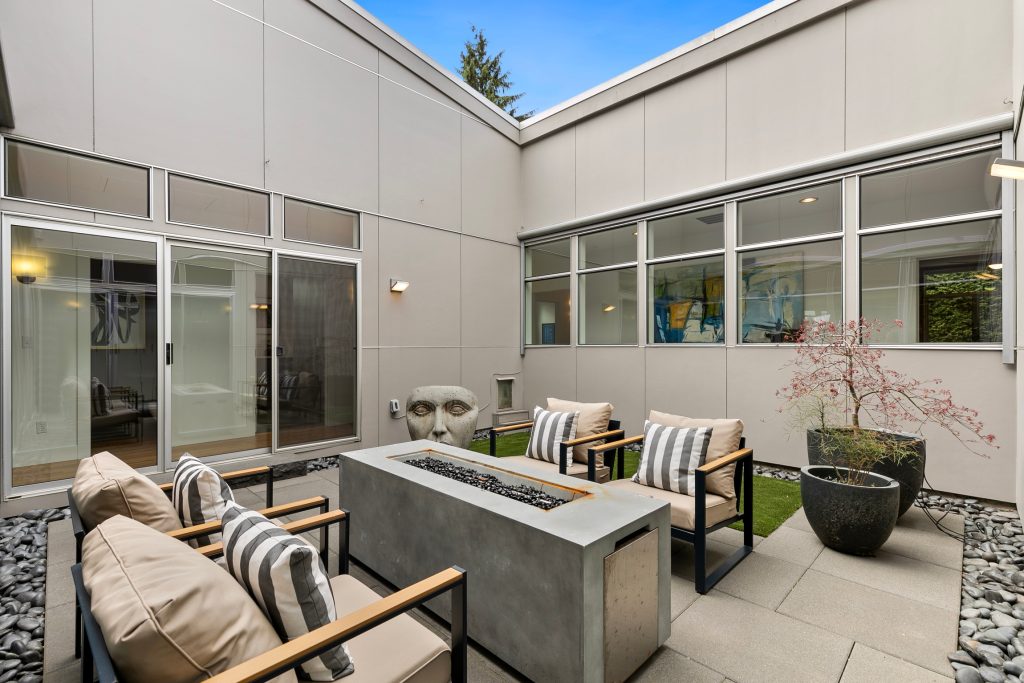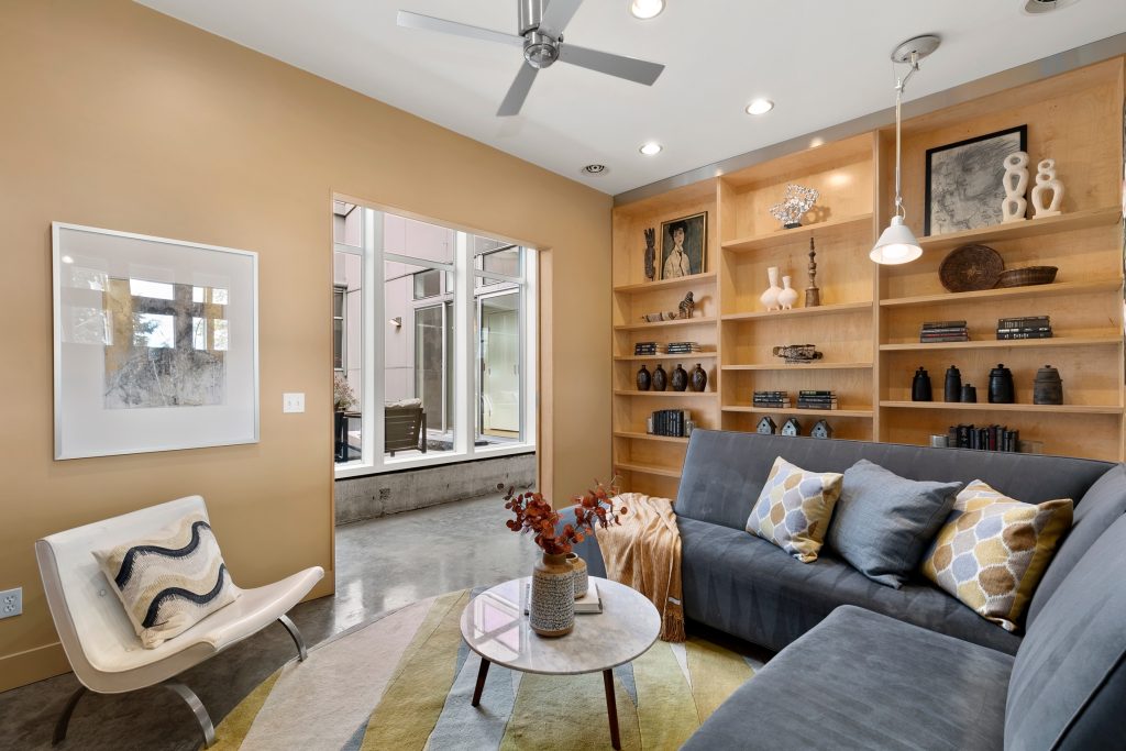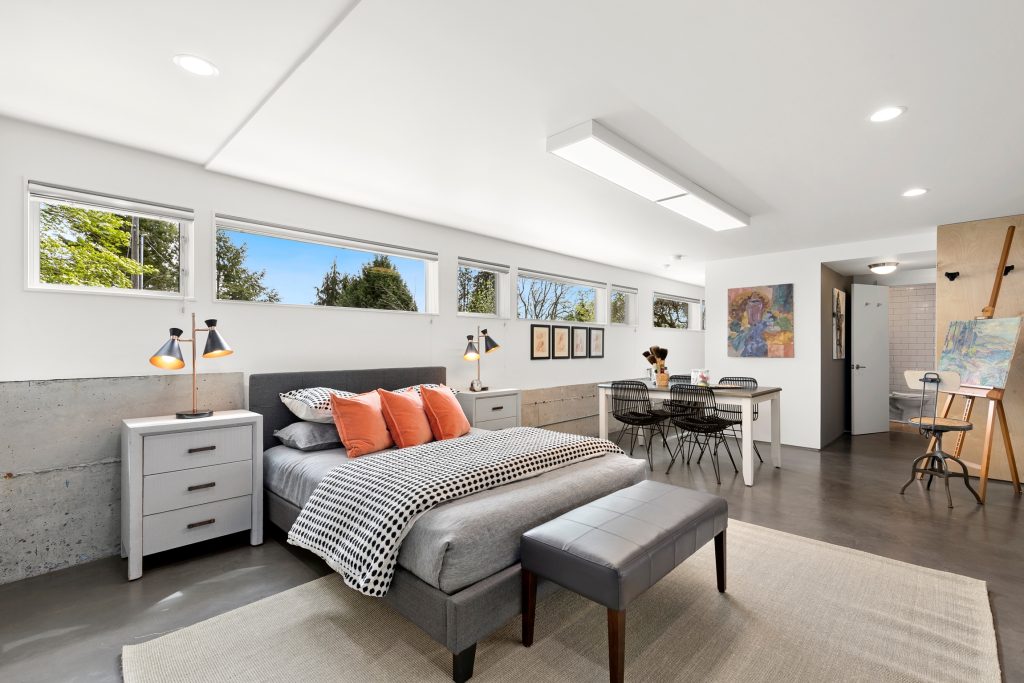 Located in the coveted Magnolia neighborhood, this beautifully modern, fully updated residence offers an exceptional blend of luxury, comfort, and natural privacy—positioned in a setting that feels quietly removed, almost like its own private street. Expansive living spaces with soaring ceilings are complemented by softly framed outlooks of the city skyline and Mount Rainier, subtly unveiled through a backdrop of mature trees, creating a rare sense of seclusion while preserving the beauty of the surroundings. Walls of windows fill the home with natural light, highlighting the refinished hardwood floors. The gourmet kitchen is a statement of elegance, featuring premium stainless steel appliances and a sleek stainless steel countertop, seamlessly connecting to a spacious dining room and a refined private office just beyond.