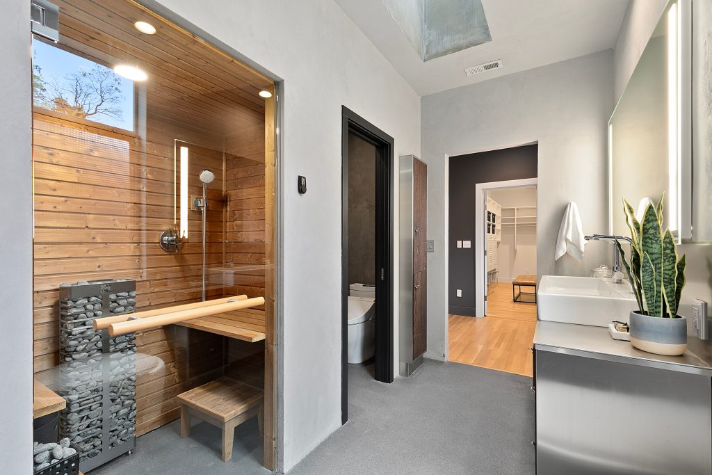 The main floor hosts a tranquil primary suite complete with a spa-inspired ensuite and private sauna, alongside two additional bedrooms joined by a beautifully finished Jack and Jill bath. At the heart of the home, a stunning indoor atrium with a firepit creates an inviting focal point for relaxed evenings. Heated floors extend throughout, enhancing everyday comfort. The lower level offers a versatile rec room with guest suite potential and an additional bath with a walk-in shower. Completing the home is a generous two-car garage, ample off-street parking, and meticulously landscaped, low-maintenance grounds—all with effortless access on and off Magnolia.