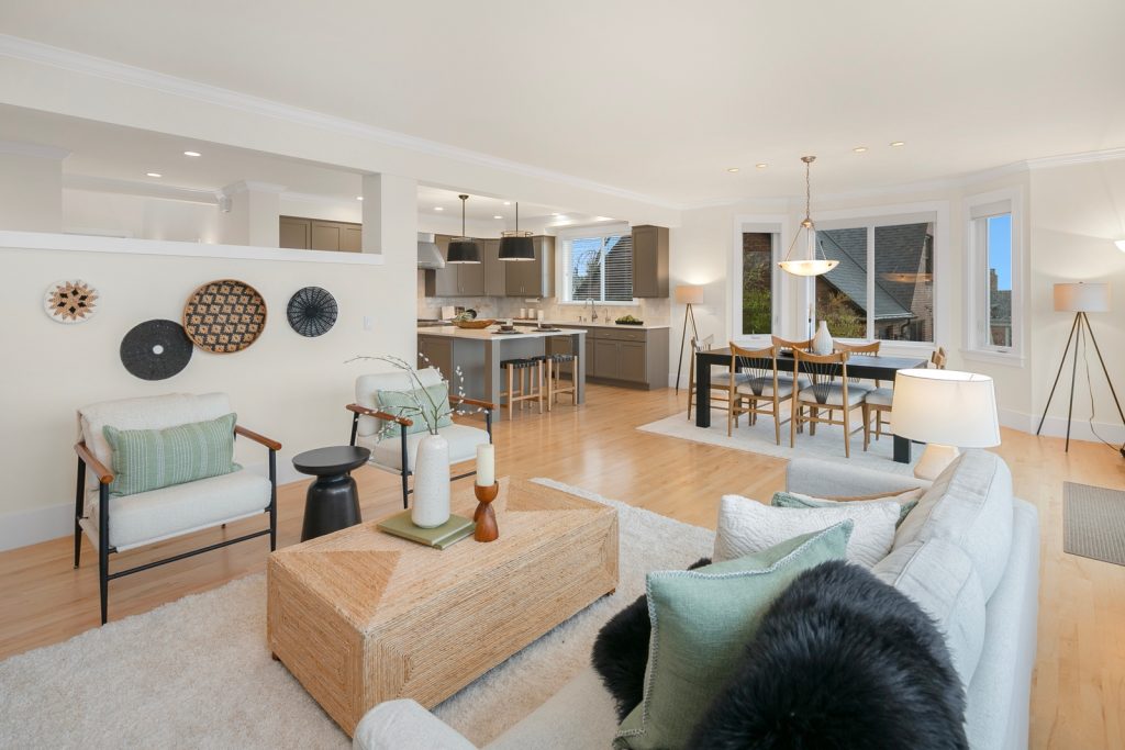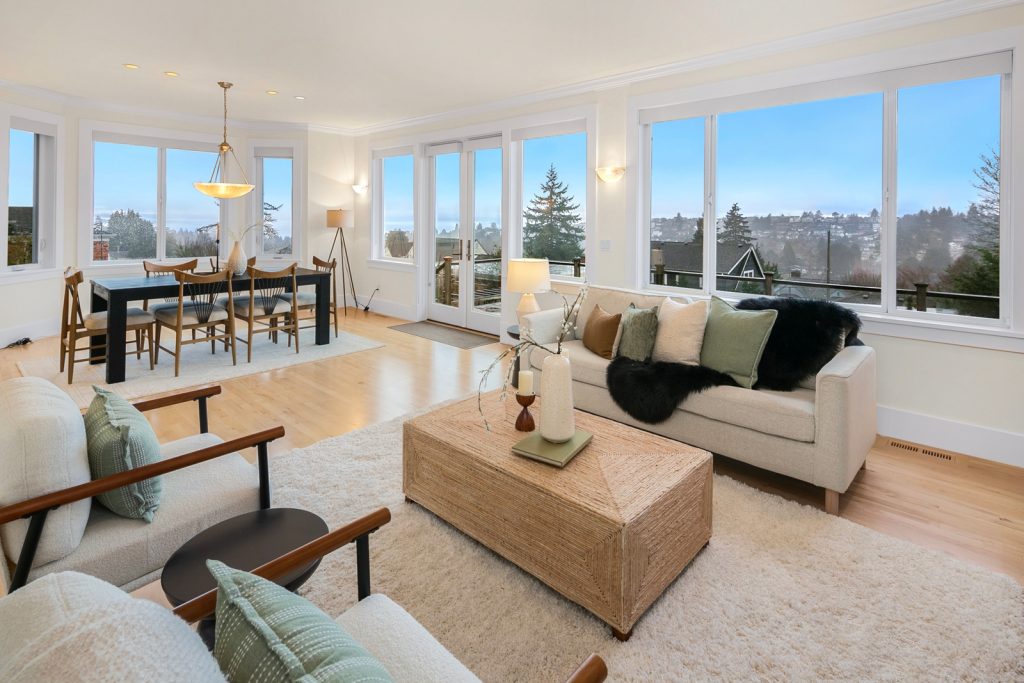 This 4-bedroom, 4-bath home is beautifully positioned overlooking Magnolia, Puget Sound, and the Olympics with peekaboo views of Mount Rainier. Meticulously maintained and truly move-in ready, it features refinished maple floors, fresh interior paint, and a stunning refreshed kitchen designed for both everyday living and entertaining. Light-filled living spaces flow effortlessly, highlighting the home's modern craftsmanship and thoughtful layout. A large double car attached garage and 2 more off-street parking spaces add everyday convenience, while the immaculate condition throughout reflects pride of ownership. A rare opportunity to enjoy elevated views, comfort, and style in one exceptional home.